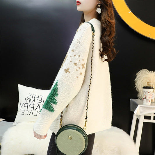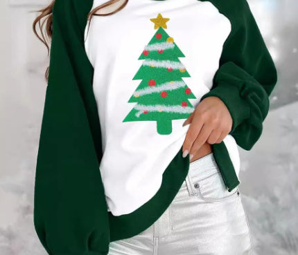 Christmas Merry Christmas Christmas tree hooded sweater large size loose top