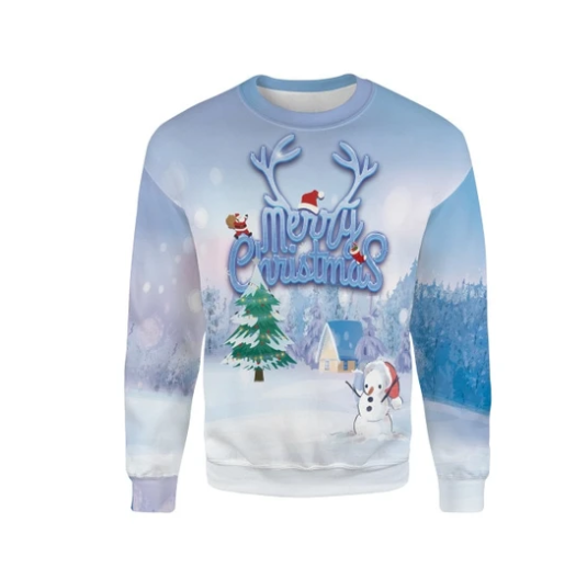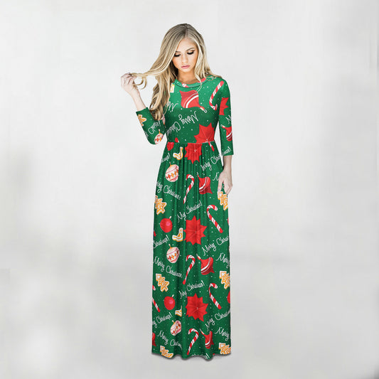Women's Loose Fashion Round Neck Raglan Sweater European And American Christmas Digital Printing