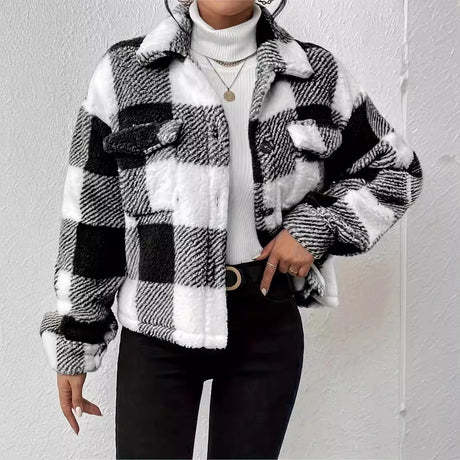 Plaid zipper pocket women plush jacket