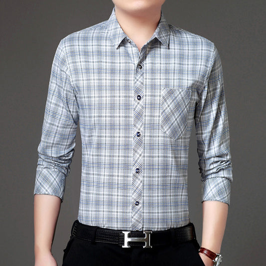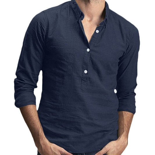 Men's Long-sleeved Denim Shirt Casual Solid Button Slim Tops Clothing