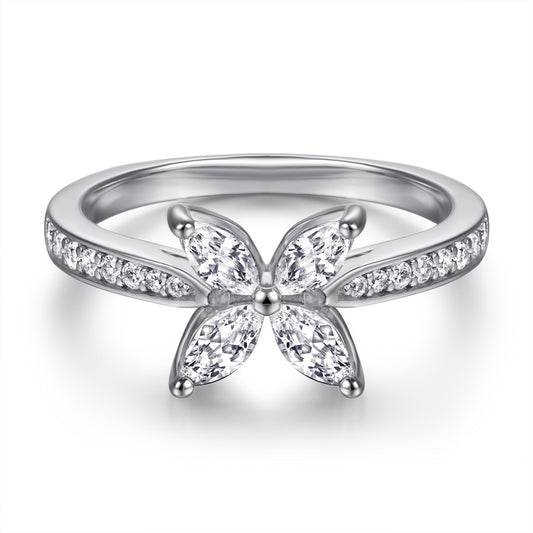 S925 Sterling Silver Ladies Gardenia Horse Eye Zircon Ring