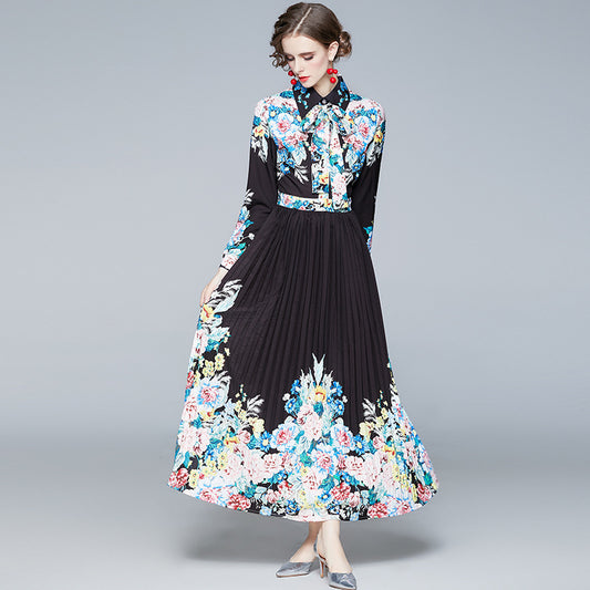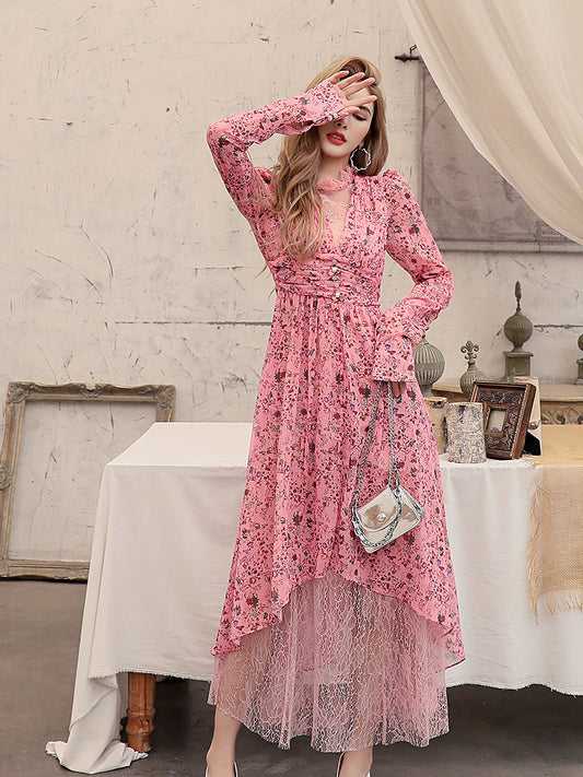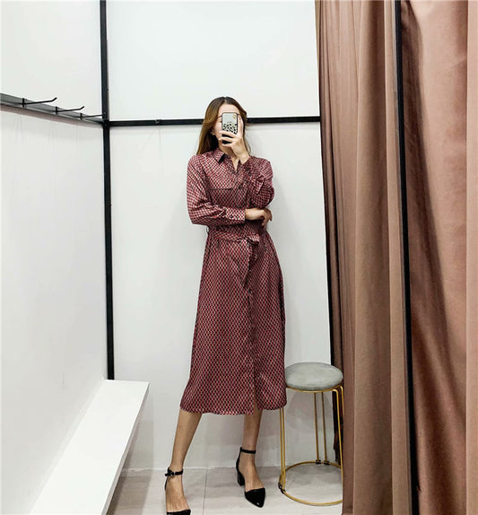 Printed Mid Waist Commuting Chest-wrapped Dress Women