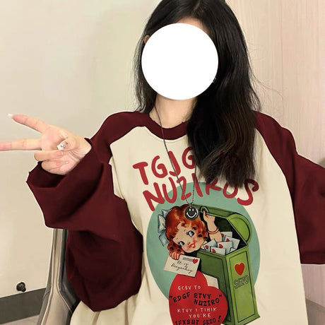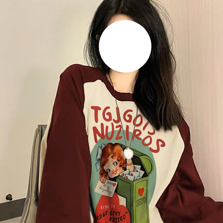 Autumn Raglan Long-sleeved T-shirt Female Dopamine Wear Match Design Sense Niche Cute Sweet