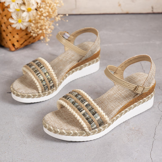 Roman Wedge Sandals For Women Rivet Buckle Strap Thick Platform Shoes Summer