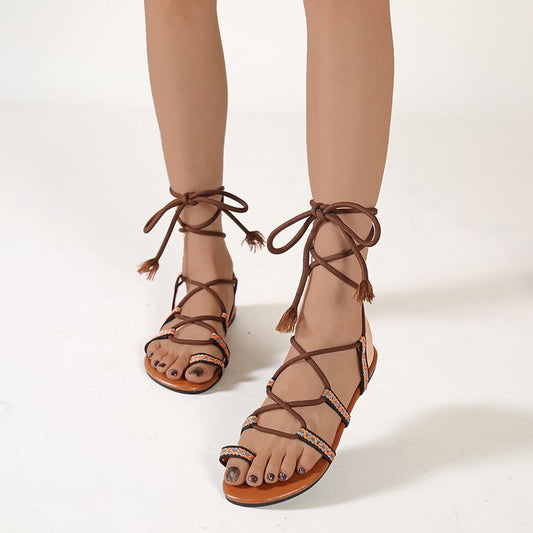 Summer Strappy Sandals Outdoor Beach Vacation Shoes Fashion Boho Lace-up Snadals Women
