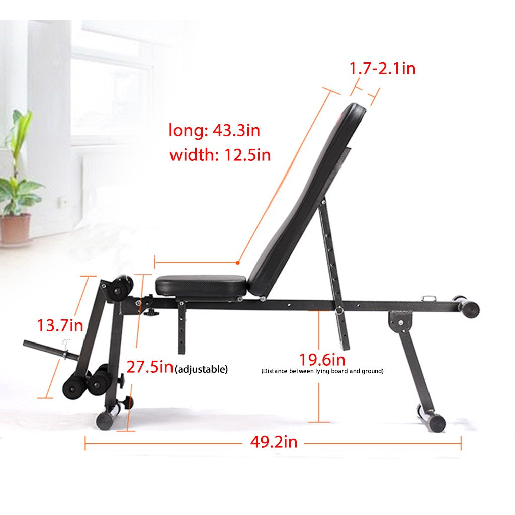- 1. [Scientific design in line with human body]: In order to enhance your fitness experience, we installed a 10.4 inch wide and 31.4 inch long backrest. All our cushions are filled with 2.1 inches thick soft foam, all made of high-quality leather, which can effectively cushion our muscles.