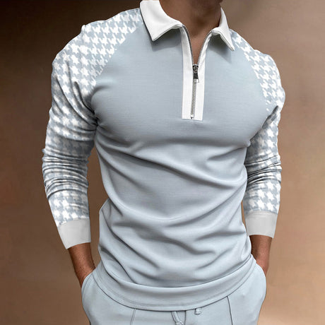 Men's 3D Printed Raglan Zipper And Lapel Long Sleeve