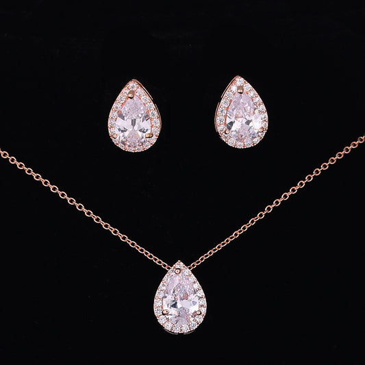 Water Drop Gemstone Necklace Earrings Jewelry Set