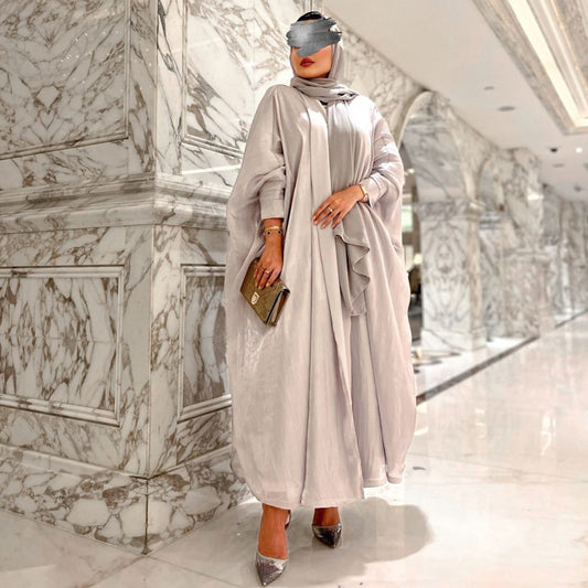 Muslim Bright Silk Satin Batwing Sleeve Robe