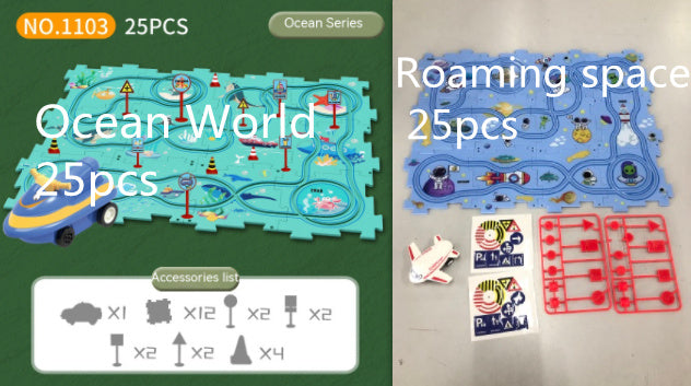 Children Puzzle Electric Railroad Speeder DIY Assembly Electric Car Automatic Rail City Scene Construction Education Toy Gift